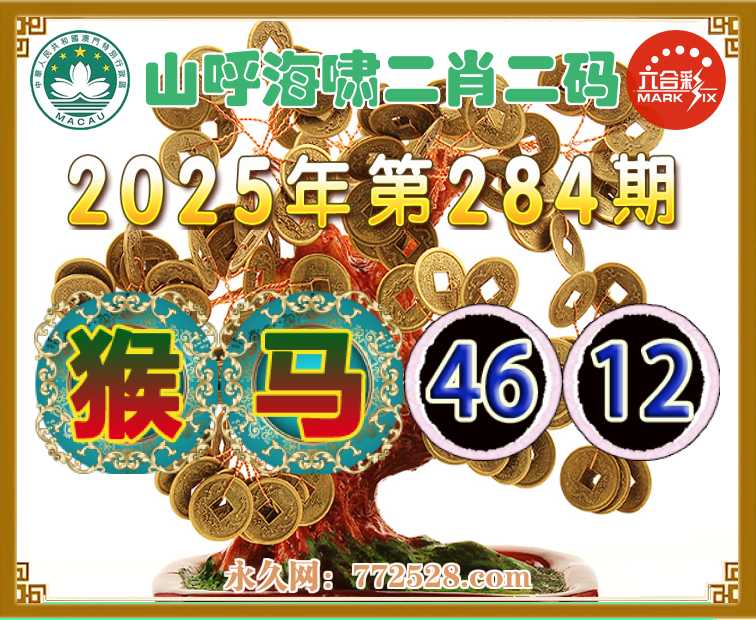 284期:【山呼海啸】 🌅二肖二码🌅【猴马】【46.12】开:牛41