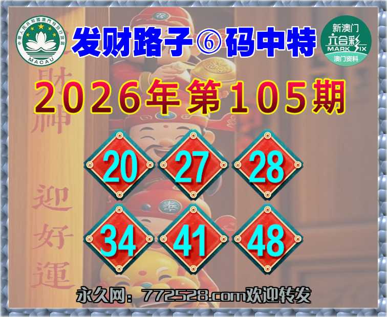 105期: 👛『发财路子』 👛⑥码中特👛【20.27.28.34.41.48】开:28准上榜高手