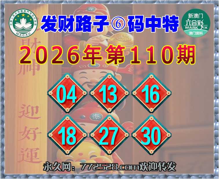 110期: 👛『发财路子』 👛⑥码中特👛【04.13.16.18.27.30】开:30准上榜高手