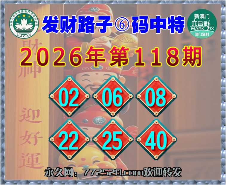 118期: 👛『发财路子』 👛⑥码中特👛【02.06.08.22.25.40】开:08准实力验证
